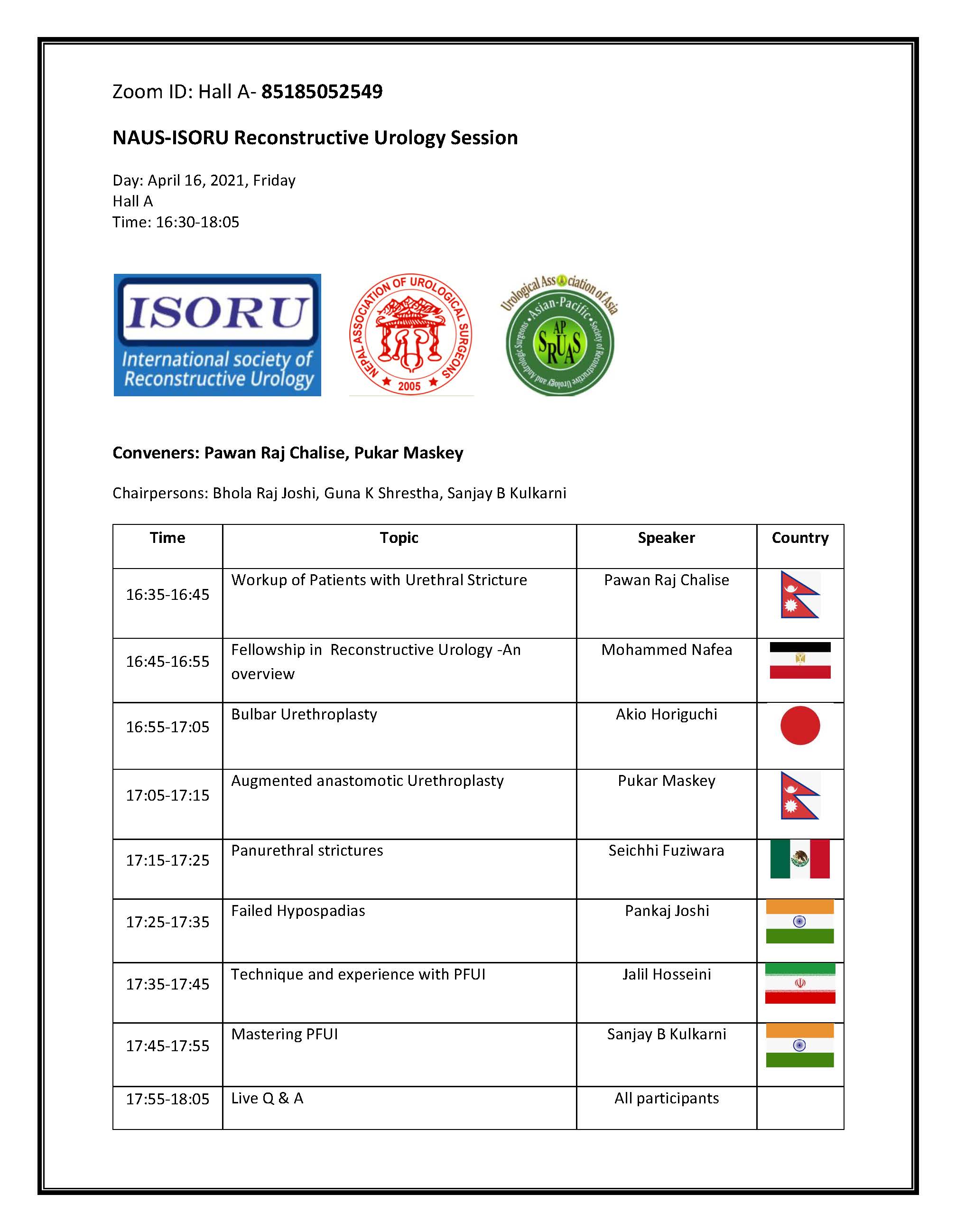 ششمین کنگره سالیانه انجمن اورولوژی نپال در تاریخ 17-16 آپریل 2021 به صورت مجازی در حال برگزاری است. این کنگره بستری است جهت بحث و تبادل تجارب متخصصین اورولوژی ترمیمی سراسر دنیا در خصوص پیشرفت ها و چالش های این رشته.
